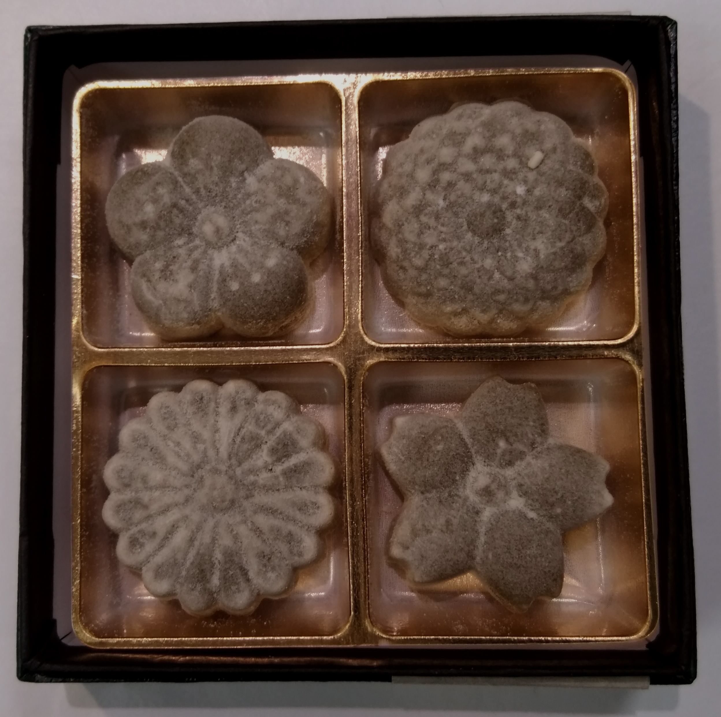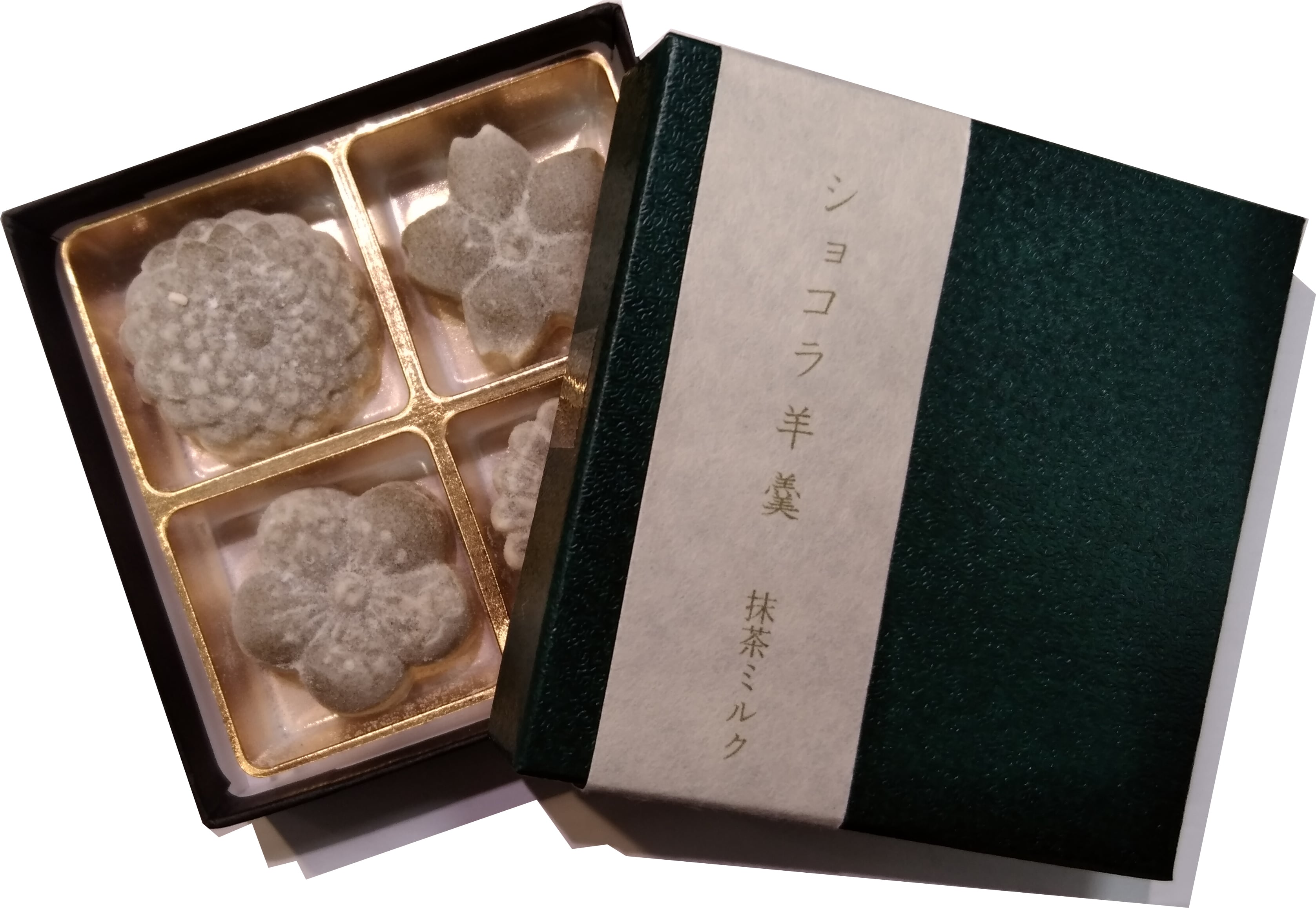 原材料:砂糖(国内製造)、大手亡(北海道産)、ココアバター、植物油脂、乳糖、寒天、抹茶/乳化剤、香料、酸化防止剤(ビタミンE)