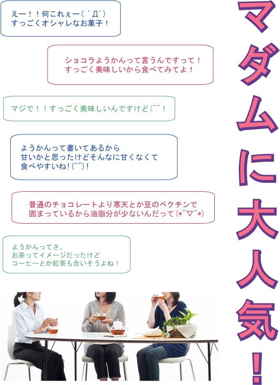 創業より120年以上つくり続けている池田屋の羊羹にホワイトチョコと静岡県産の抹茶を煉りこんだ温故知新の新感覚スイーツです。特にマダムの方にとても人気があります!