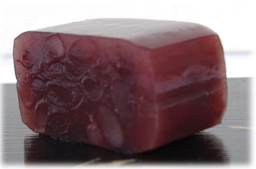 通常の煉羊羹と大きく違うのは食感で、つぶつぶの量は『きんつば』を思い出させる程の質量です。つぶつぶの皮一つ一つのプチプチ感が適度な食感の心地良さを与えてくれます。